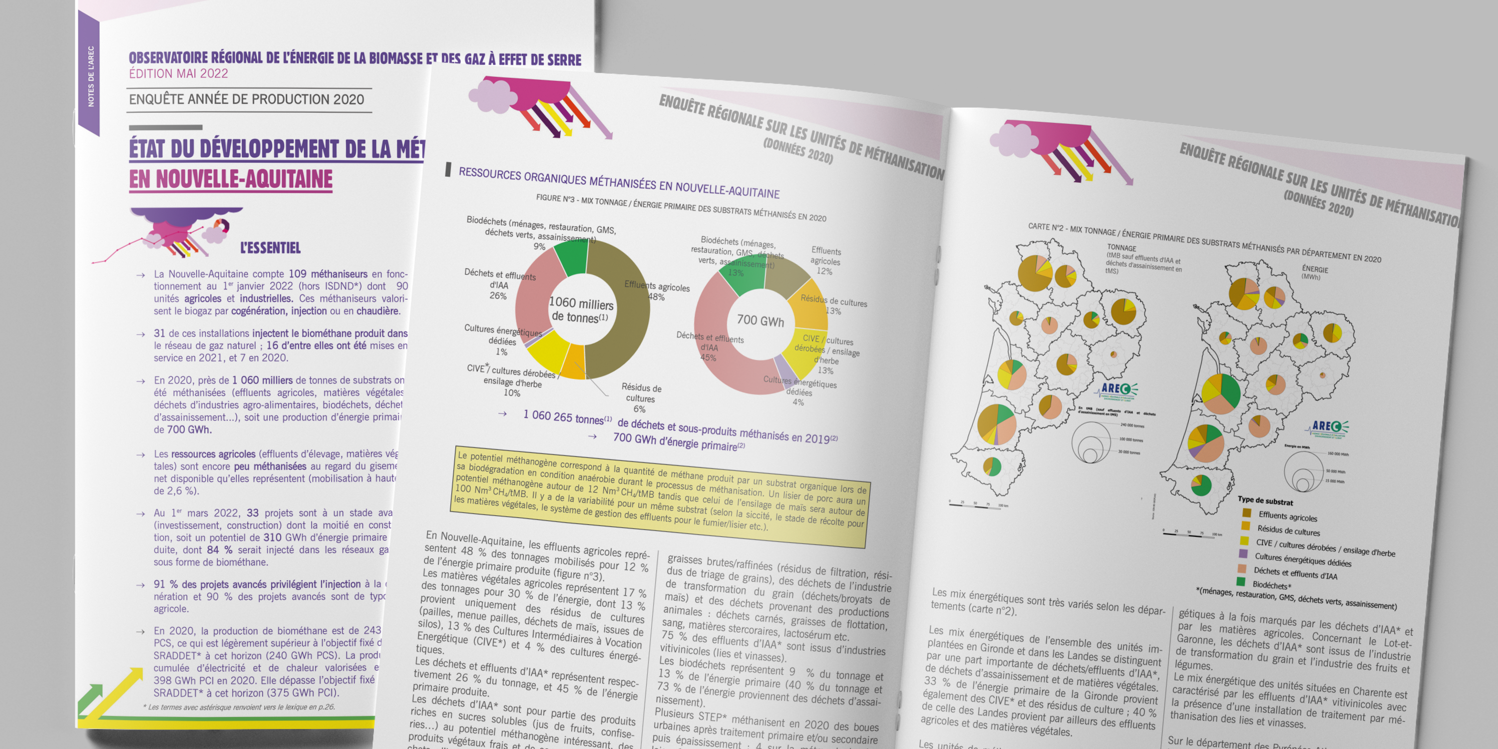 Ce document est élaboré par l’AREC dans le cadre des travaux de l’Observatoire Régional de l’Energie, de la biomasse et des Gaz à Effet de Serre de Nouvelle-Aquitaine (OREGES), et du dispositif régional MéthaN-Action qui accompagne la filière méthanisation en Nouvelle-Aquitaine.